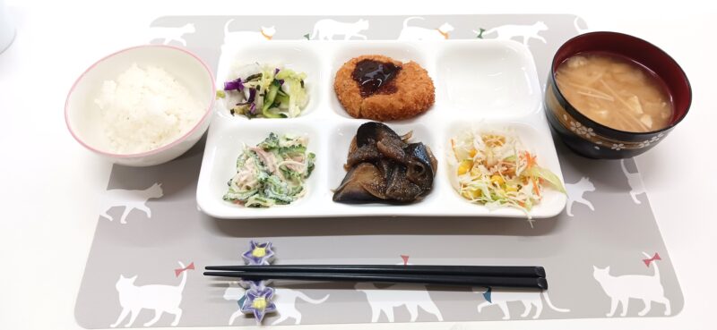 今日は玉子丼なのでおかずは控えめです。おかわりする利用者様が複数人いらっしゃいました!
