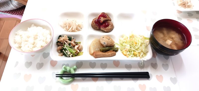 ハンバーグが出ました。投稿担当者はケチャップで食べるのが好きです!
