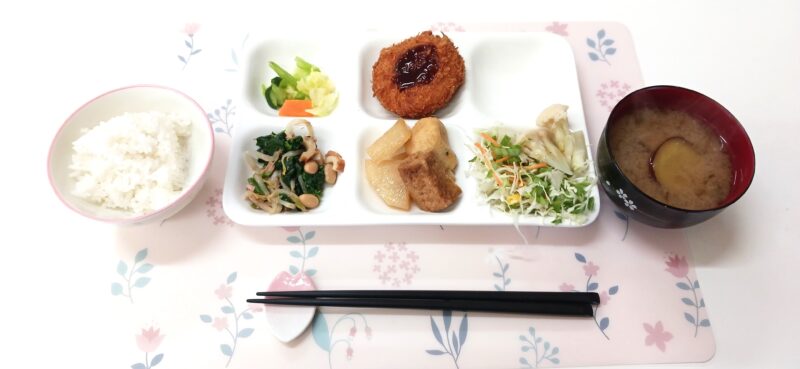 さつま芋のみそ汁が出ました。甘くて美味しいと評判でした!